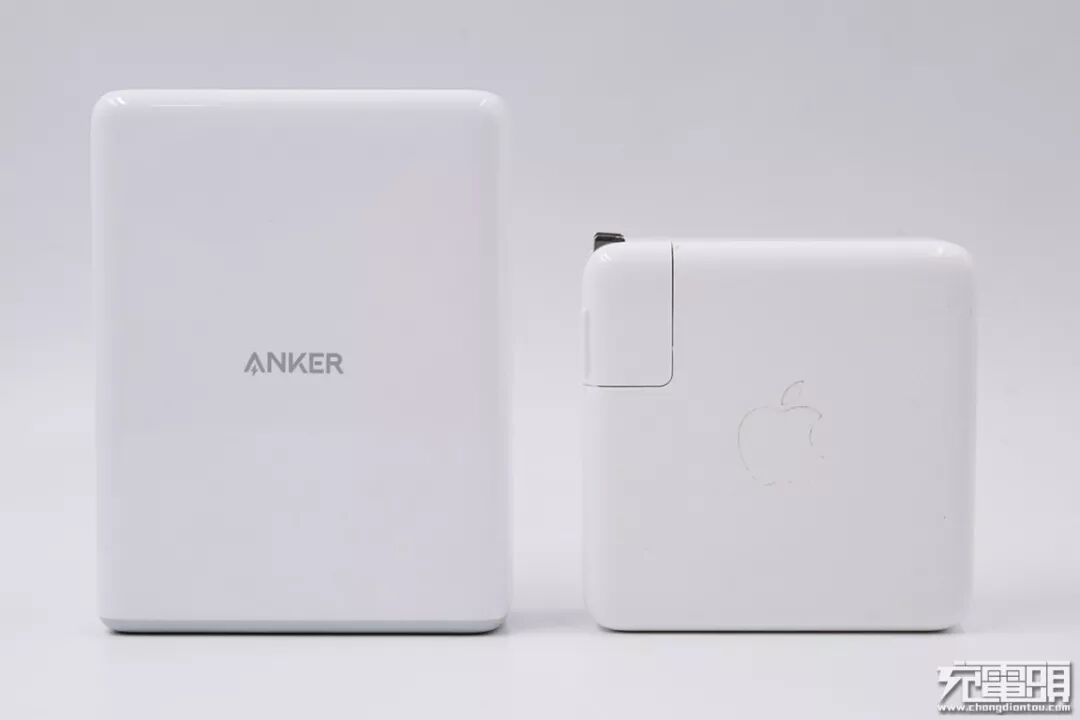 Anker PowerPort Atom PD 4 100W充电器体积略大于苹果87W PD充电器。