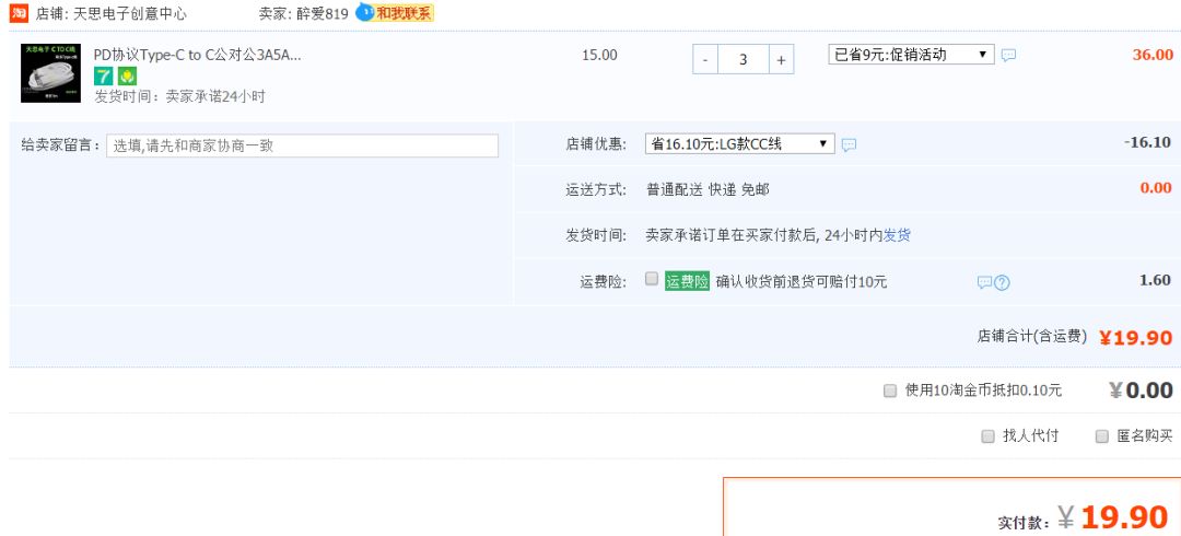 这位卖家也是充电头网电粉,之前的华为24W、锤子18W等车也是出自他之手。考虑到卖家为人,我们这趟车才得以成功发出。最后大家关注的此次发车是否给力,最终168元(368-200)的售价,我想已经足够具有说服力了。
