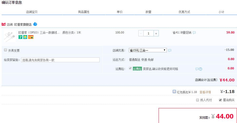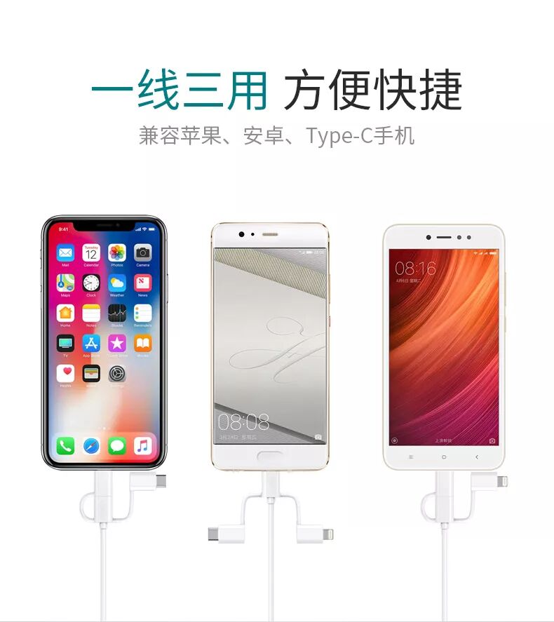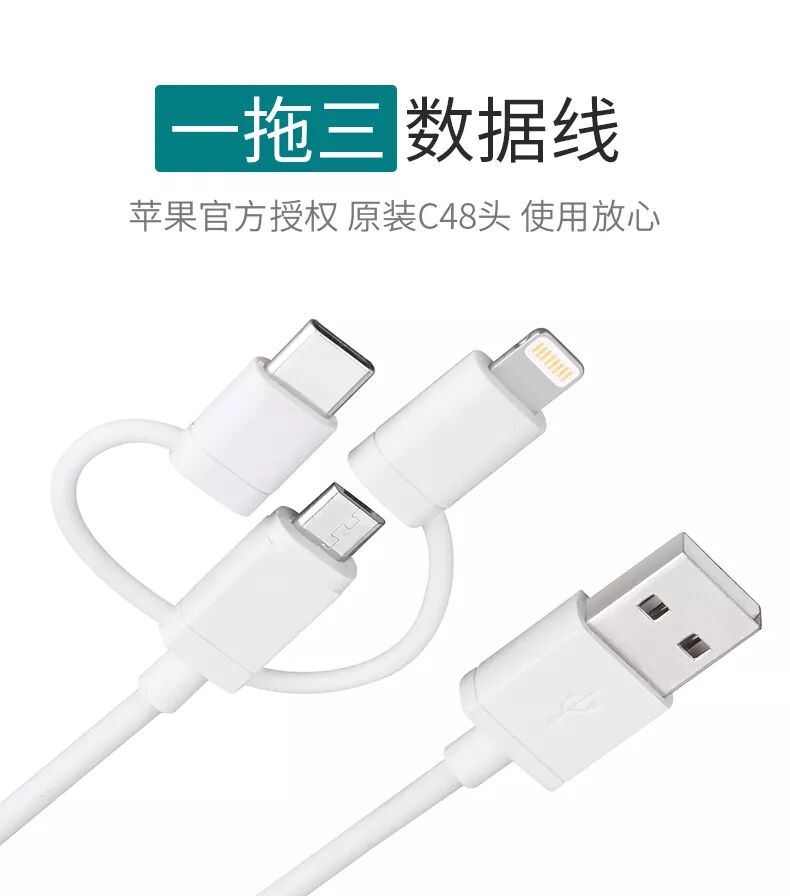 1、OPSO MFI认证三合一数据线(一米) ,送QC 3.0充电器