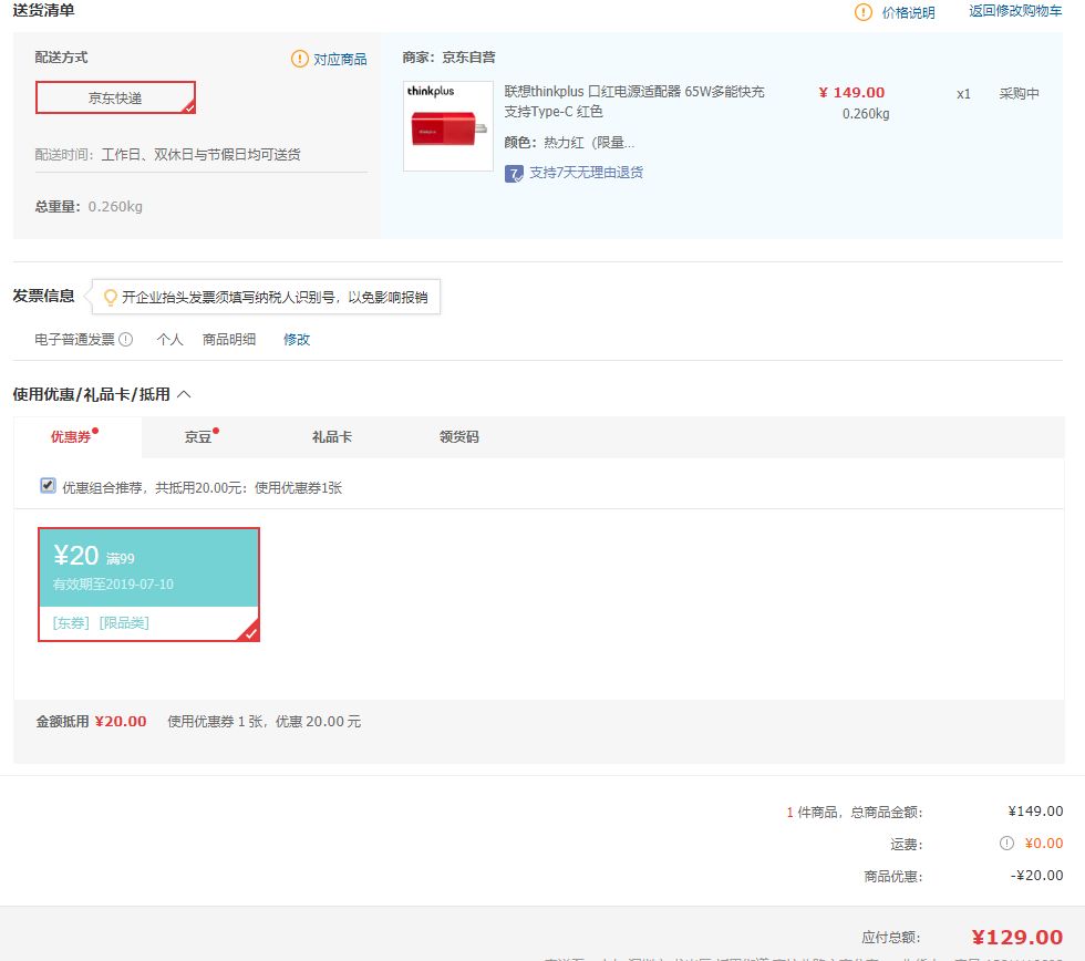 上车方式:“领券上车”。目前红色149元,领取活动页面给到的满99减20券,实付129元包邮。