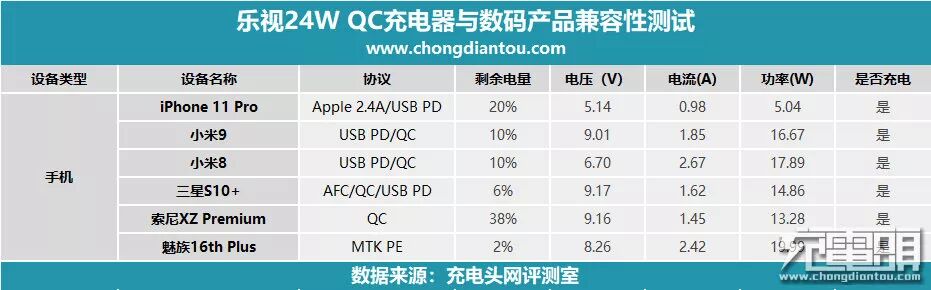 既然支持这么多协议,实际的兼容性将会如何,下面小编找来一些支持该协议的手机设备与充电器进行测试,看看充电器是否可以为这些手机正常握手快充。