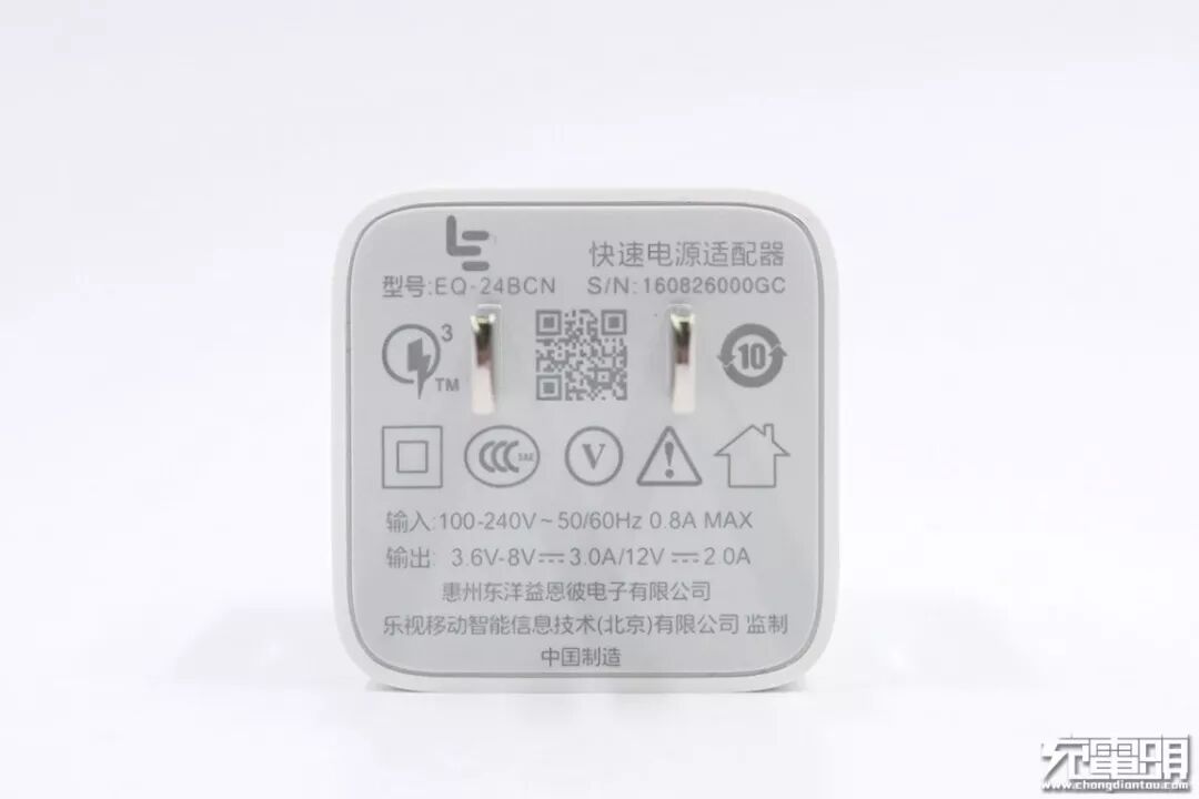 充电器:乐视 24W 充电器 惠州东洋版