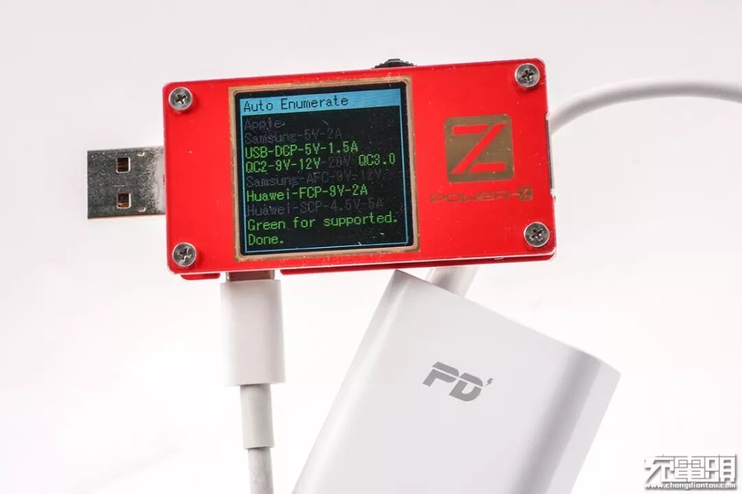 实测中该充电器支持PD、PPS、QC、FCP、Apple 2.4A快充协议,能给市面上大部分数码产品提供快充支持,兼容性测试时的表现也不错,对支持PD快充的设备都能准确握手PD快充,对于一些不挑输出档位的笔记本电脑也能充电,充电器最大功率为18W,用来充手机是最好不过。