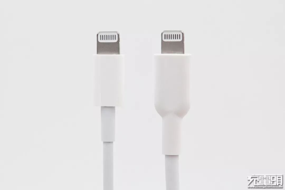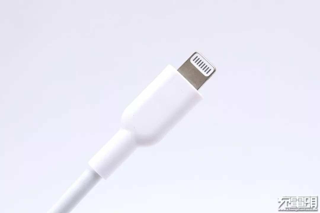 Lightning端细节。二、ANKER Powerline II C to Lightning 数据线测试1、端子测试 对于USB-C to Lightning数据线来说,首先肯定要检测一下Lightning头端子是否为原装,因为非原装的头子会出现兼容性问题,例如手机升级系统后会提示该线缆无法提供充电的情况。