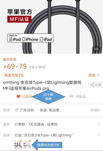 购买方式:淘宝搜索“omthing”,认准“omthing官方企业店”,选择“2m米Tyep-c转lightning”,直接拍下,系统直接减免。