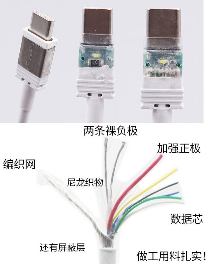 富,在用料,插头金属外壳,金属屏蔽层,金属屏蔽网,尼龙防扯线,加粗正极,双股负极,大厂做工一点不含糊。正是因为拥有优良的用料,锤子1米线的内阻只有0.11Ω(普通线材在0.15~0.3Ω之间)。