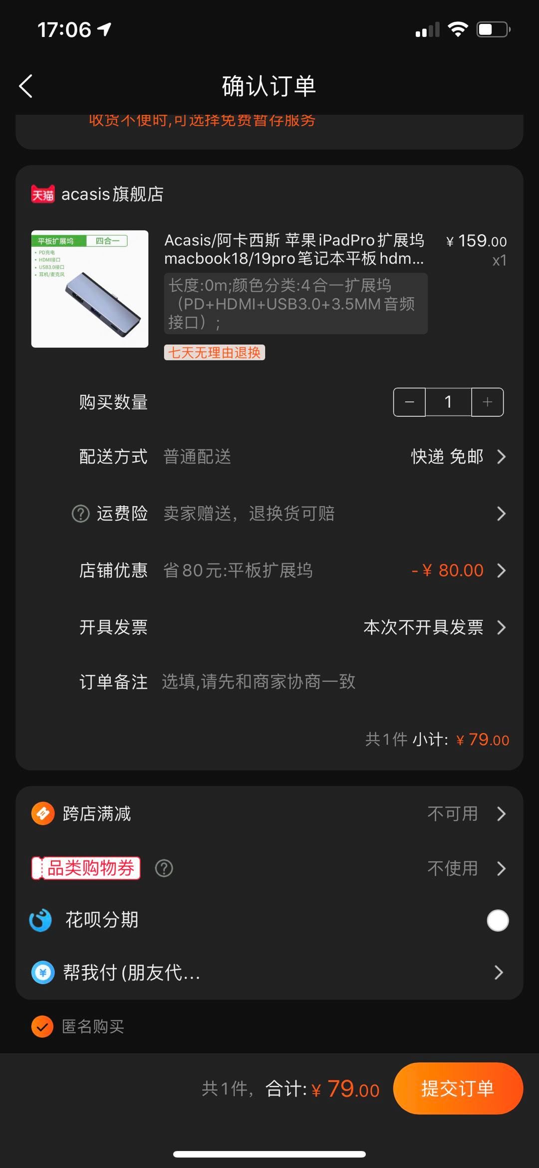 购买方式:淘宝搜索关键词“阿卡西斯 Typec扩展坞” 寻找“acasis旗舰店”店铺, 原价158元,现可以领取一张80元优惠券,半价到手仅79元,数量有限,先到先得。优惠券领取方式,在充电头网团购微信后台回复关键词20200305,自动弹出优惠券领取链接。