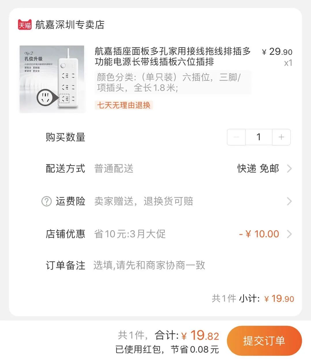 今天充电头网团购带来的是航嘉的SSH608插线板,原价29.9元,领取优惠券后到手19.9元。