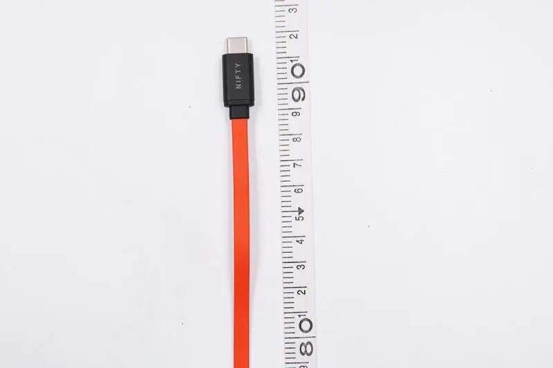 此款线为美国品牌NIFTY的双头Type-C数据线,使用的是橘红色TPE材质,非常少见的Type-C to Type-C的扁线设计。