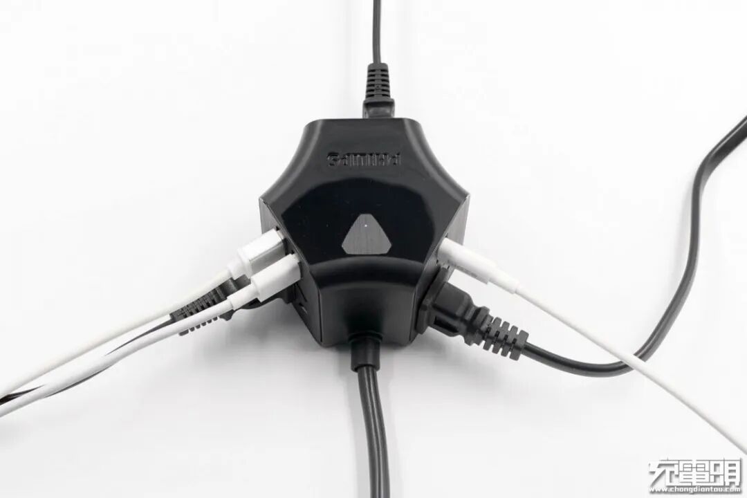 PHILIPS飞利浦摩天轮PD快充插座可以同时为三台220V设备、3台数码产品同时供电,满足六款设备的用电需求。立体Y型设计分为三个面板,每个面板都有自己的独立空间,不存传统插线板插头之间相互干扰情况。