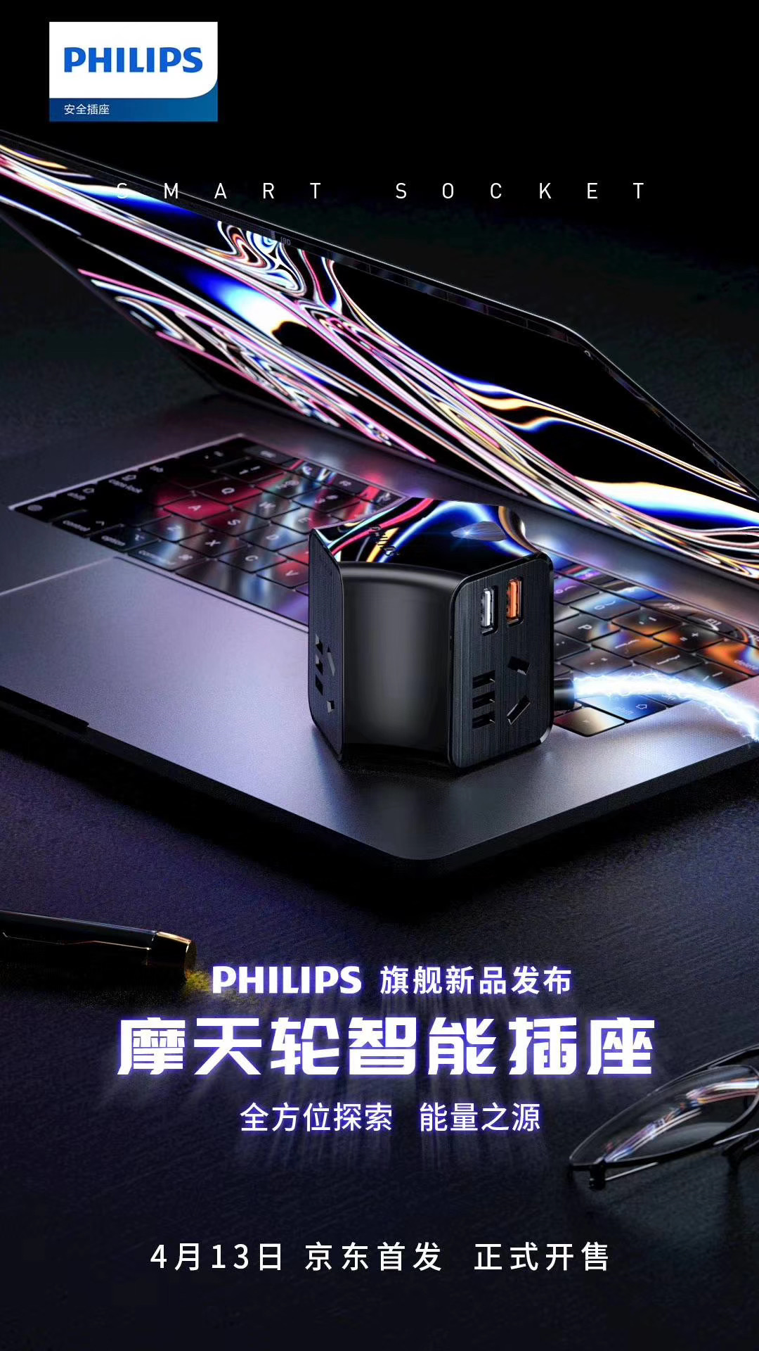 PHILIPS飞利浦摩天轮PD快充插座4月13日在京东商城首发预售,京东定价为89元,参与预售活动可用1元定金抵21元,实际到手价仅59元!