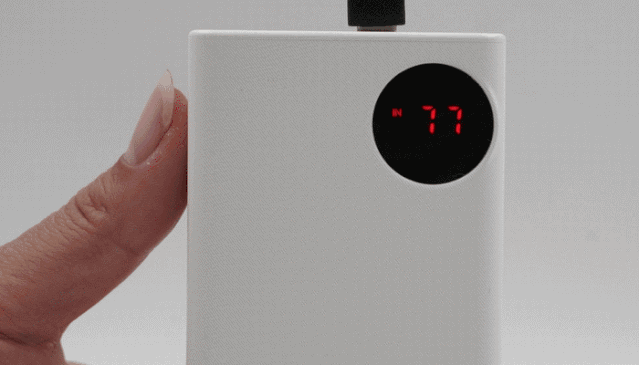 此外,移动电源还自带了电流表,当移动电源为设备充电或者为自身回血时,就可以显示当前的工作状态,通过I/O按钮可以控制显示屏,从电量百分比——>电压——>电流三种功能之间循环切换。