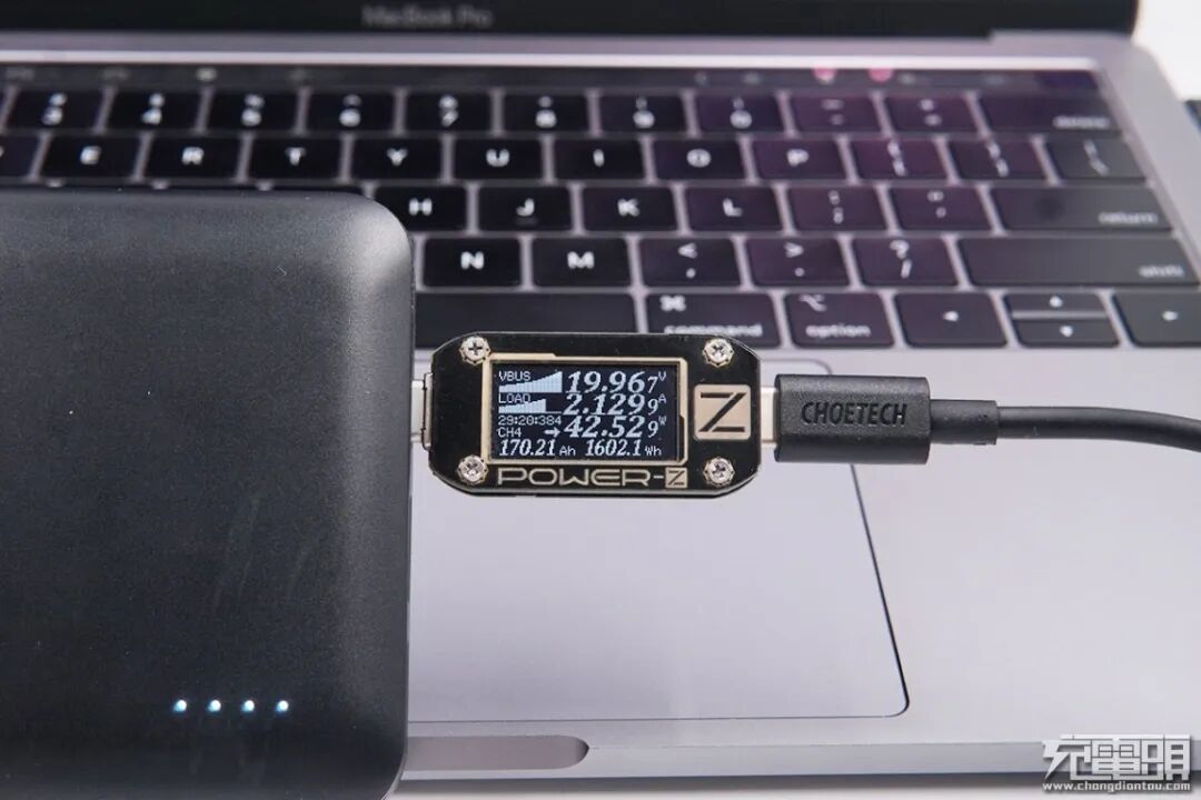 MacBook Pro支持USB PD快速充电协议,使用移动电源的USB-C为MacBook Pro 充电,功率为20.04V 2.18A 43.78W,成功握手PD快充协议。