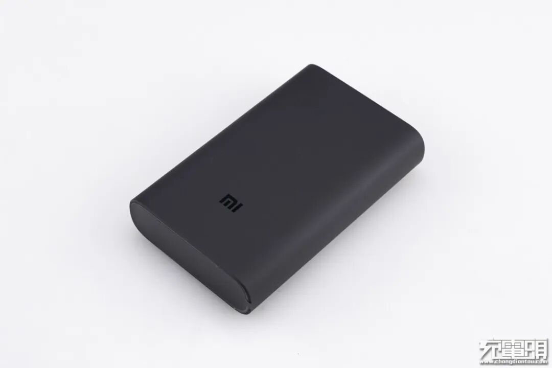 移动电源整体呈现黑色外观,上下两面为扁平设计,四周的边角部分过度圆滑,看起来更为圆润,表面材质为磨砂材质。磨砂材质的外观下镂印着“MI”Logo,并且表面呈现亮面的Logo在四周为磨砂材质的外观下显得更外亮眼。