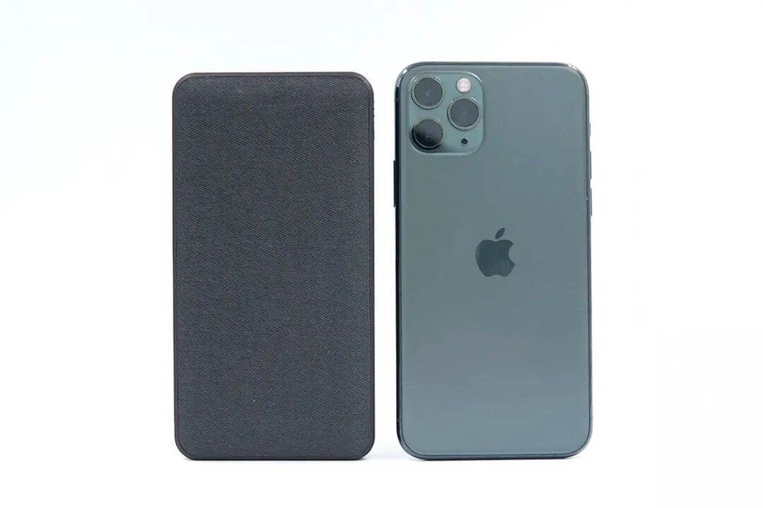 mophie 10000mAh 布艺快充移动电源三围尺寸72.37mm * 139.15mm * 18.44mm,与iPhone 11 Pro尺寸几乎一致,手机充电时与移动电源同携手感更好。