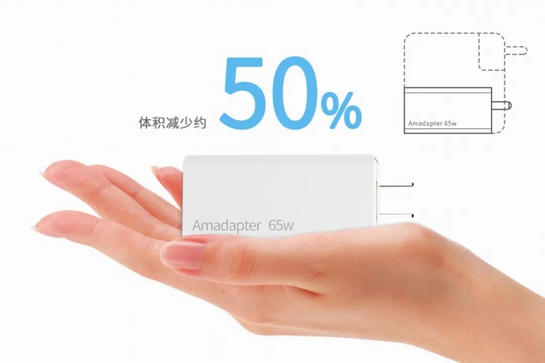 飞频四口PD快充充电器内部采用立体布局设计,比同功率级充电器体积减少约50%,尺寸做到了76mm * 39mm * 34mm,配合可折叠插头出门携带无压力。