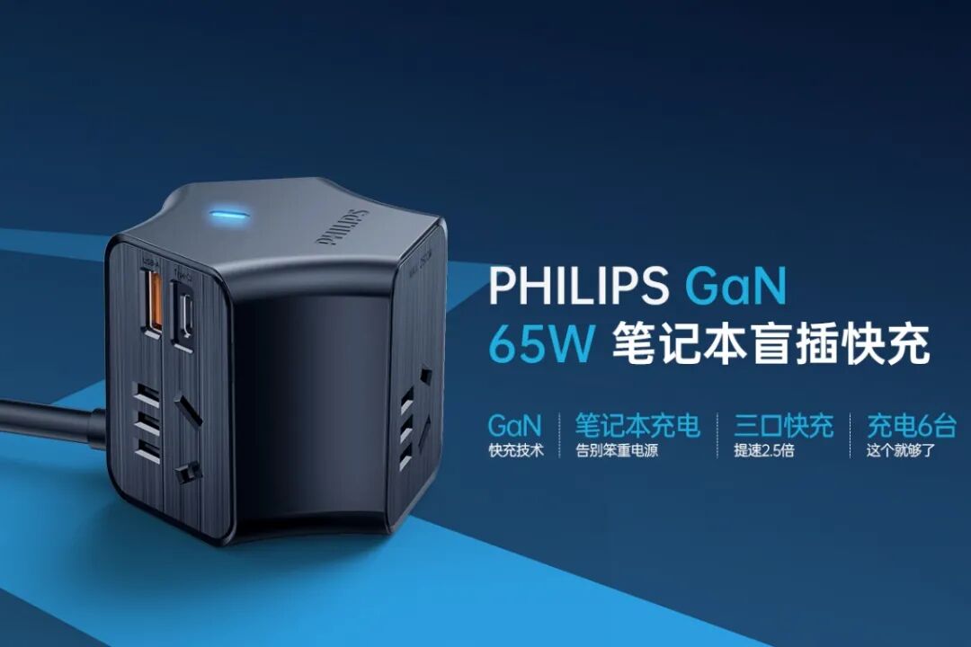 2020年初,飞利浦推出了小巧好用的2A1C PD摩天轮插座荣获好评,半年后,飞利浦将氮化镓技术融合到魔方插座中,推出了摩天轮系列中最顶级的旗舰产品“飞利浦65W氮化镓摩天轮插座”,内置性能强大的氮化镓PD快充模块。