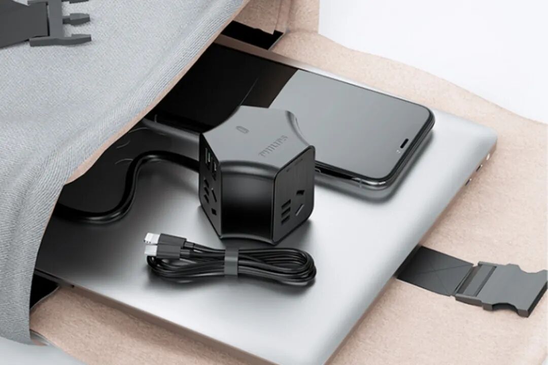 差旅出门时带上飞利浦氮化镓摩天轮插座可给你一个愉快的旅途,体积小巧不占行李空间,在酒店或咖啡厅使用可扩展多个交流插孔,并且它还是一个性能高达65W的三口氮化镓充电器,一次过搞掂所有数码产品续航保障。