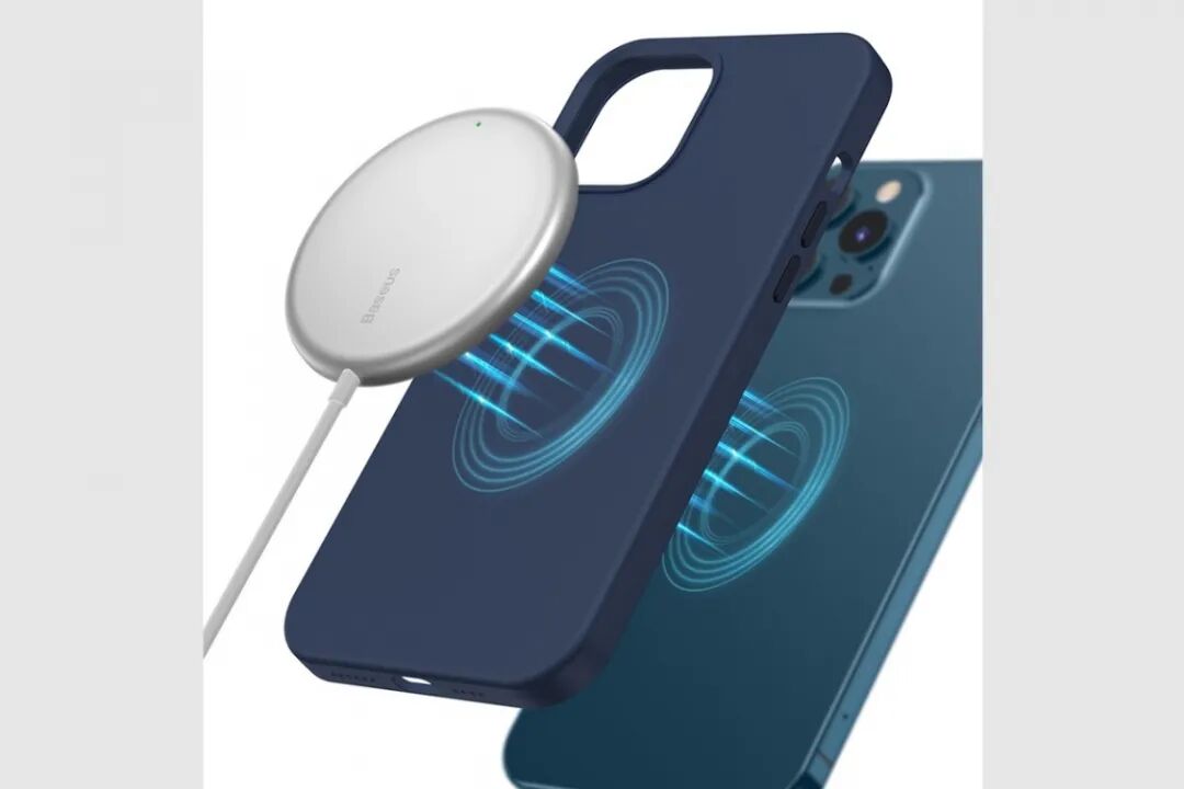 除直接吸附手机提供无线充电外,倍思极简Mini磁吸无线充电器也支持带壳使用,iPhone 12装配上倍思磁吸保护壳或苹果MagSafe磁吸保护壳后,一样可以正常使用它来进行无线充电。