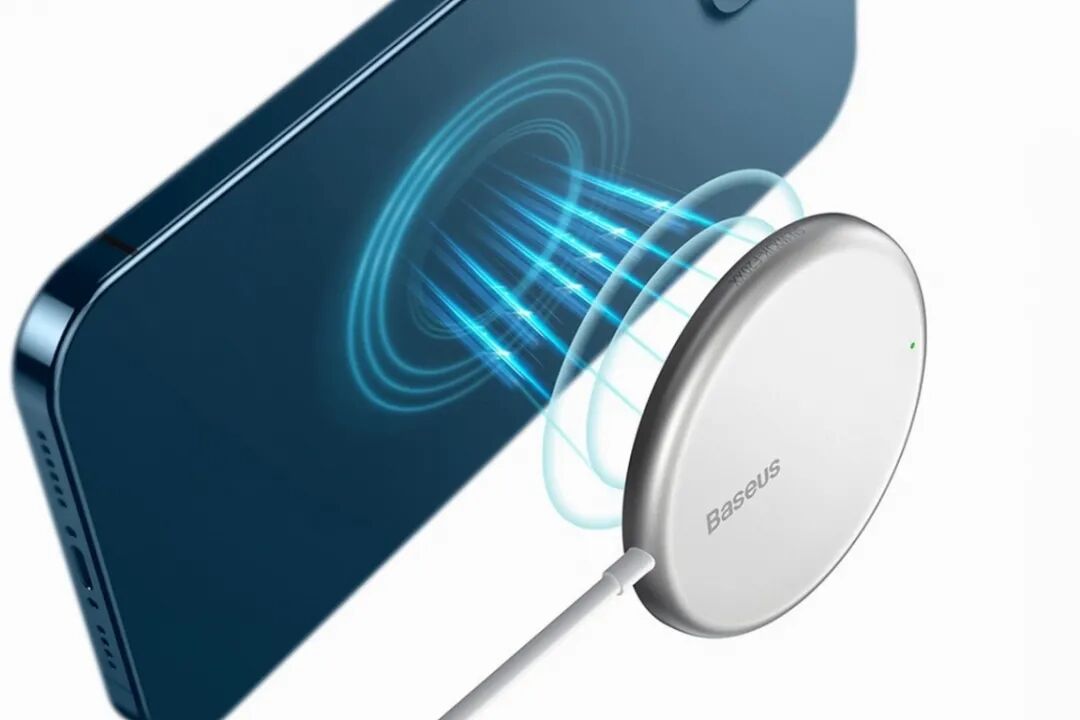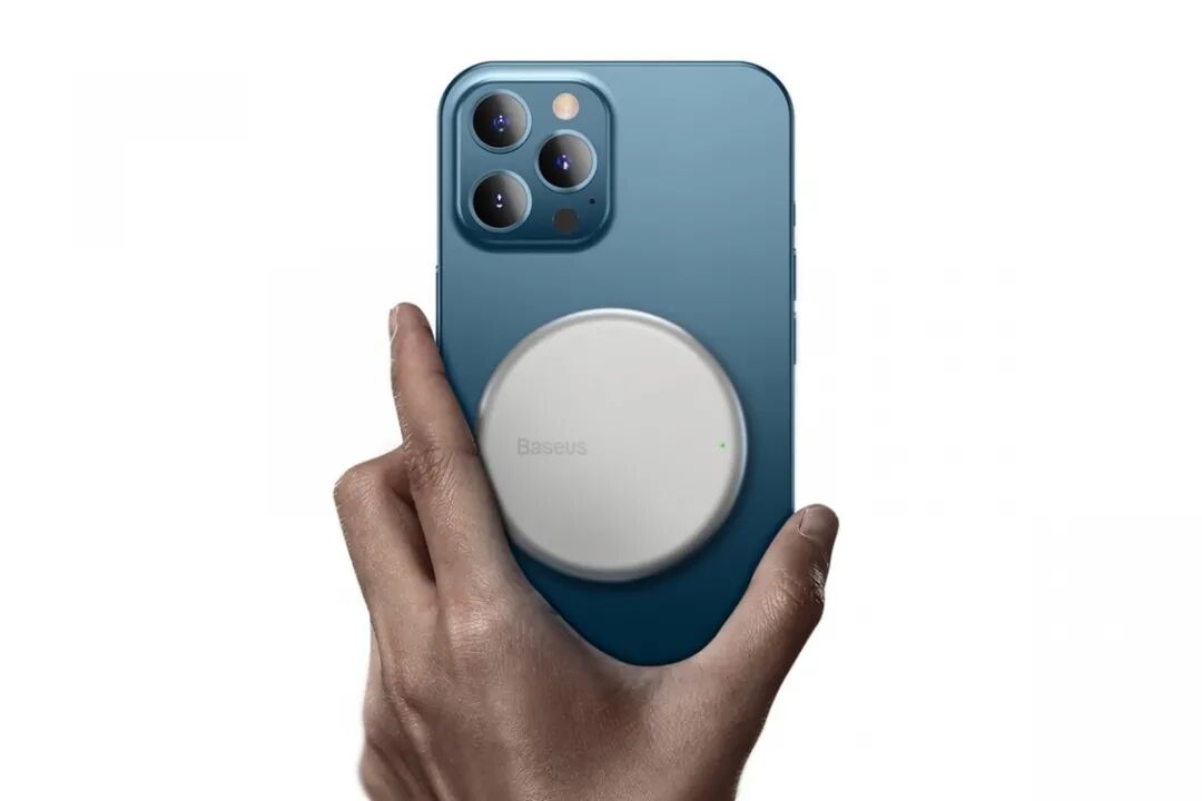 倍思极简Mini磁吸无线充电器铝合金外壳圆润过渡,吸附后与iPhone 12无缝贴合,强磁吸附拿起不断充,边充边玩不割手。