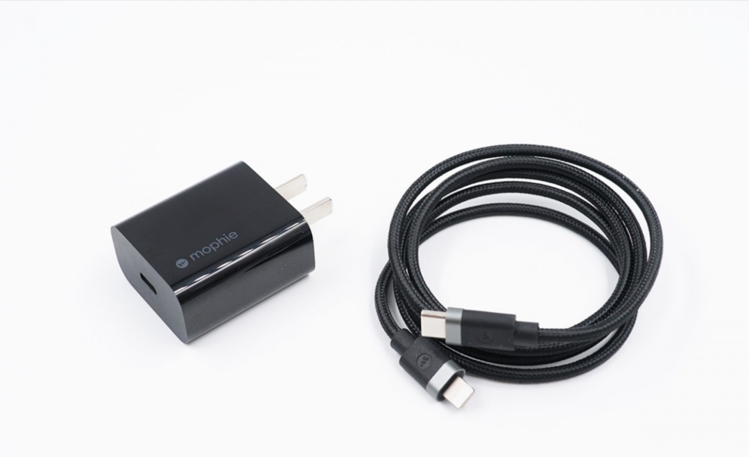 mophie 20W PD 充电器外观采用家族设计,几乎纯黑的壳体非常简洁,整体严肃而优雅。充电器的体型和大小与苹果20W充电器相差无几。性能方面,mophie 20W PD充电器支持QC2.0、QC3.0、FCP,以及USB PD3.0快充协议,具备5V3A、9V2.22A、12V1.67A三组固定电压档位。配备的C to Lightning快充线整体采用编织线身,耐磨耐脏抗拉扯,mophie 20W PD套装可以说专门为iPhone 12推出,整个套装均经过了MFi认证,放心使用充电不弹窗,想买个放心的20W PD快充套装,选这套就够了。