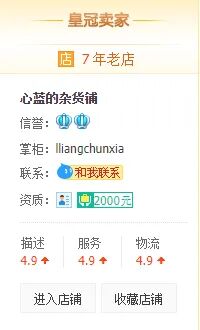 心蓝的杂货铺作为一家7年老店,信誉两个皇冠,称为皇冠卖家,从淘宝给出的卖家信用等级计分方式来看,要销量超过2万单,并且被好评才能积累到这一信誉。