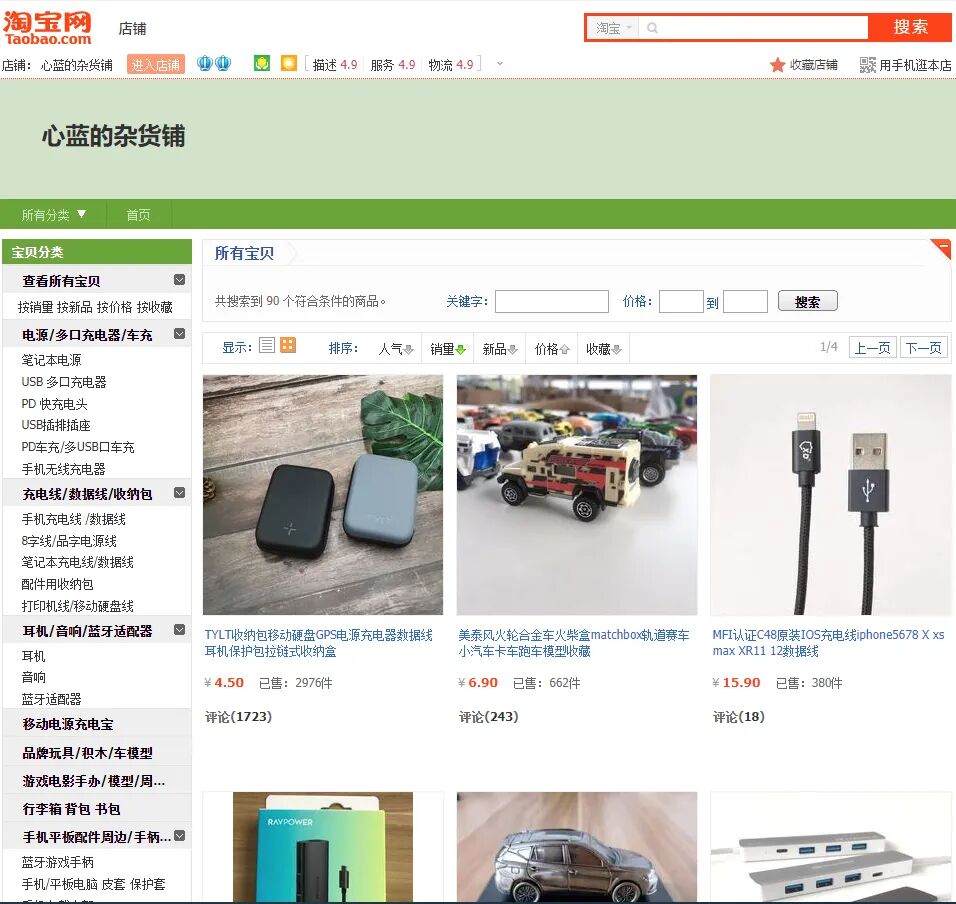 数码森林从店铺就能出,这是一家专营数码配件的淘宝店,从手机充电器、数据线到家用路由器、网线一应俱全。