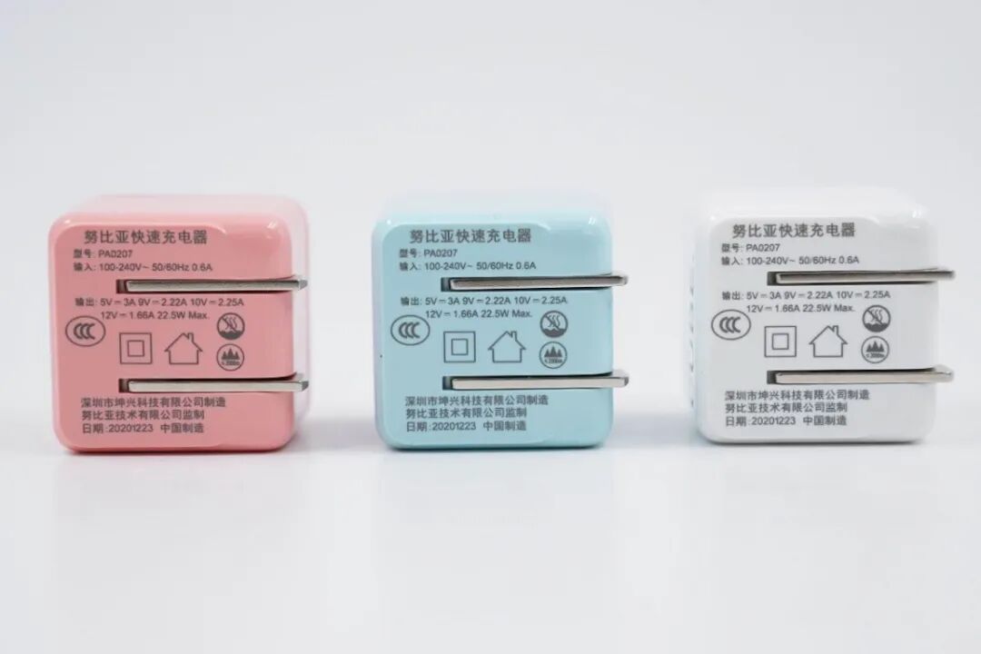 底部可以看到努比亚方糖快充采用可折叠插脚设计,这么小巧还拥有折叠插脚用户外出使用更方便。铭牌参数方面,努比亚方糖快充详细型号为PA0207,支持100-240V 50/60Hz 0.6A全球电网,输出带有5V3A / 9V2.22A / 10V2.25A / 12V1.66A 最大输出22.5W,制造商坤兴科技有限公司,产品已取得3C认证。
