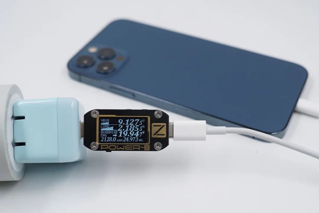 努比亚方糖快充具备9V2.22A电压档,可以为大部分数码产品提供20W PD快速充电,实测努比亚方糖快充为iPhone 12 Pro充电,功率为9.12V 2.18A 19.94W,成功握手iPhone 12 Pro 20W PD快充,可在30分钟内充入50%电量。