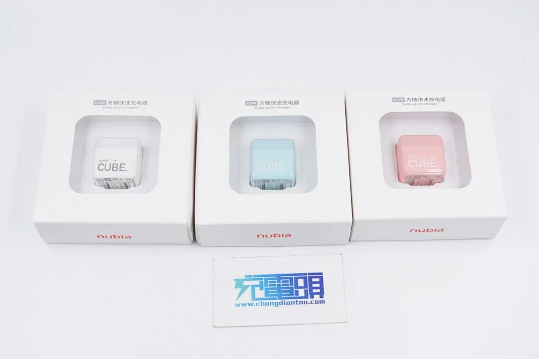 努比亚方糖快充配备一个USB-C输出接口,最大输出功率22.5W,共有四色可选,分别是奶油白,抹茶绿,草莓粉,薄荷蓝,在侧面印有“nubia 22.5W CUBE”字眼作为点缀,潮爆就完事了。
