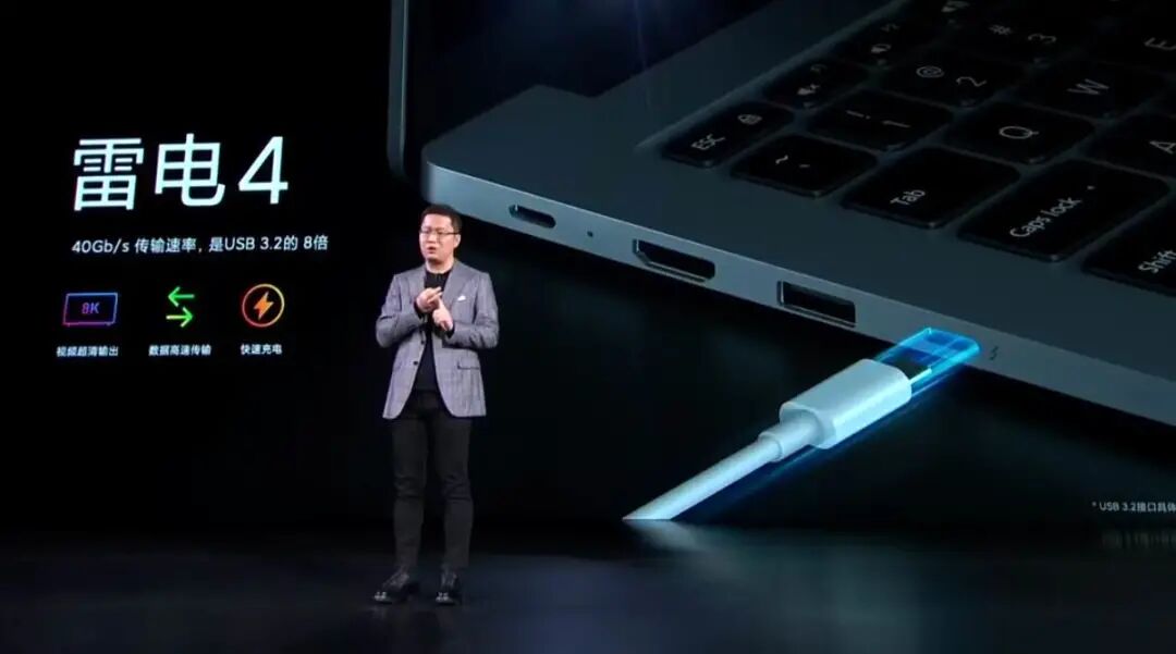 接口方面,RedmiBook Pro 15搭载了一个超高速全功能雷电4接口,支持40Gbps超高速率数据传输 ,支持8K超高清视频输出,并支持PD快速充电。其他接口方面,一个USB-C接口支持充电与数据传输、一个HDMI接口、一个USB-A 3.2 Gen1接口、一个3.5mm音频接口、一个USB-A 2.0外设接口。