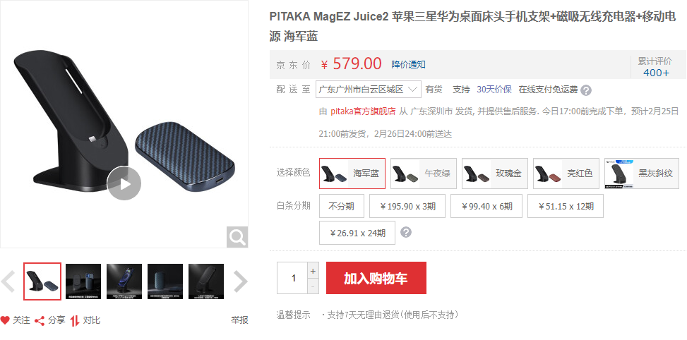 可以看到这套产品由充电底座和mini的便携式磁吸无线充电宝组成,最大的特色在于外出时可以直接使用磁吸无线充电宝供电,归来后可以将充电宝和手机一起放在底座上,继续无线充电。PITAKA是在售卖商品,更是在贩卖一种方便的充电方式,一种轻快的生活方式