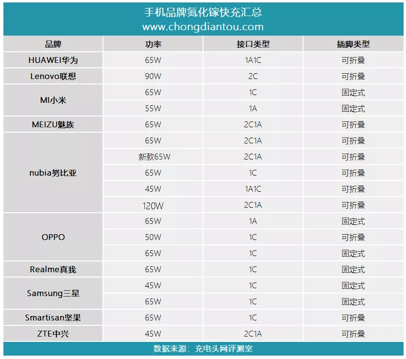 来自充电头网数据显示,2020年已经有10家手机厂商推出了18款氮化镓快充,产品种类非常丰富,一时间市场变得热闹非凡。