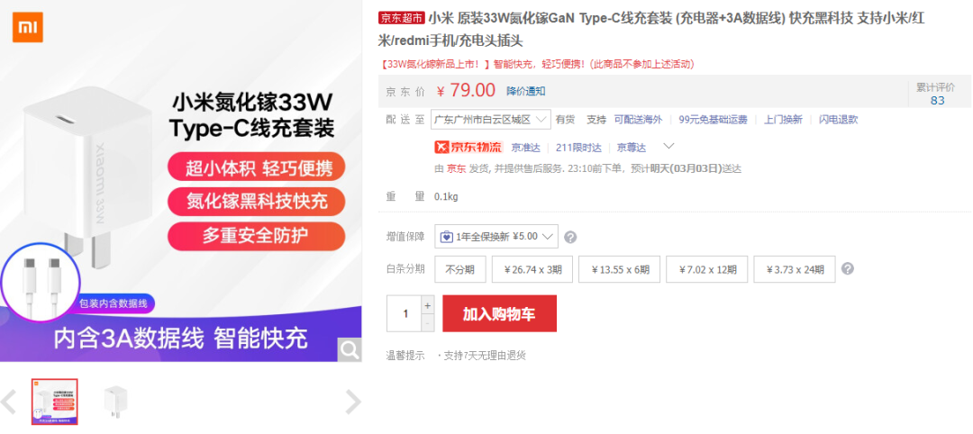 33W的小米快充以及30W的PD快充可以为手机、平板甚至笔电提供充电并且满足功率需求,一个充电器即可解决电子设备三件套甚至四件套的用电需求,并且体积非常小巧,无论是在家等固定地点使用还是出门携带都非常不错。