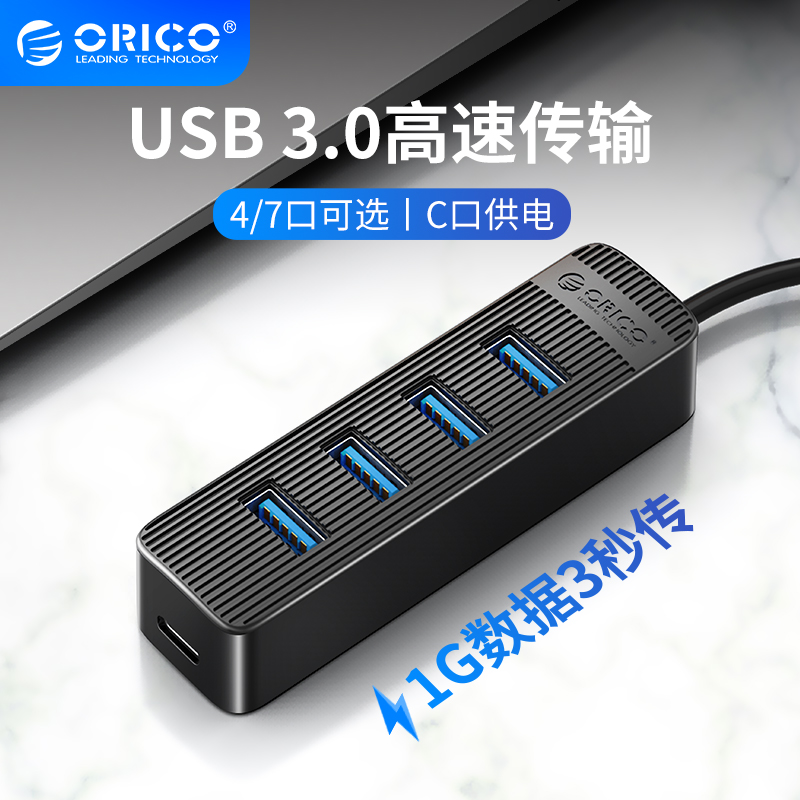 第五款 一拖四的大间距分线器(Hub),支持5Gbps USB3.0的数据传输,并且预留有10W Type-C供电口,线长度: 0.15m便于收纳。