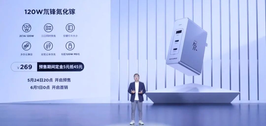 努比亚一直致力于快充生态建设,先后推出了多款快充配件,这次Z30 Pro发布会同样带来了多款快充产品。努比亚120W 2C1A氘锋氮化镓充电器拥有超大功率输出,并支持多设备同时充电,定价为269元,预售期间定金5元抵45元。