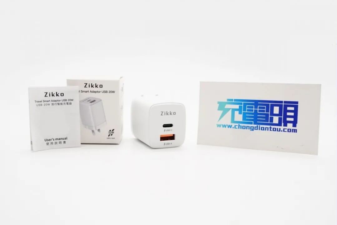 Zikko 20W PD充电器采用了双口输出配置,USB-C PD快充 + USB-A QC快充也就是常说的万金油1A1C,并且还支持双口同时输出,可以为两台设备同时充电。外形方面属于方形结构,可折叠插脚设计,三围尺寸分别是36.2mm X 32.03mm X 45.89mm,功率密度约为0.37W/cm³。