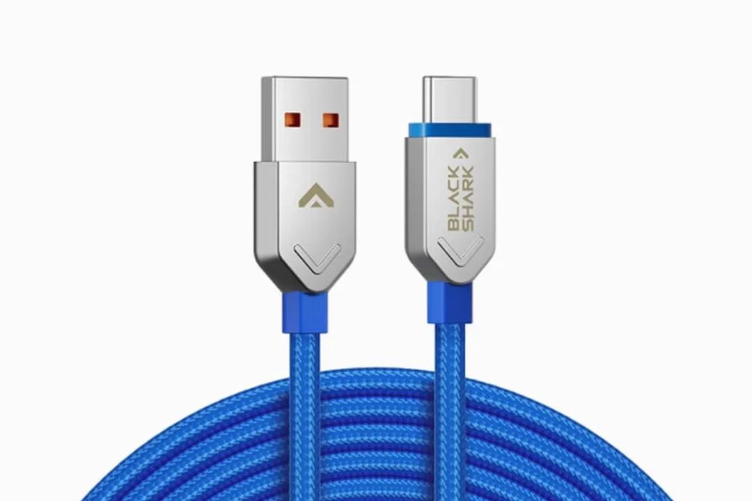 配套的线缆为USB-A to USB-C魔改PD线缆,通过特殊针与充电器特殊触点打通CC数据通道,实现A口系统支持USB PD快速充电标准。线缆同样采用深度定制设计,银/蓝配色,外皮为编织线提高耐用度,支持6A大电流传输。