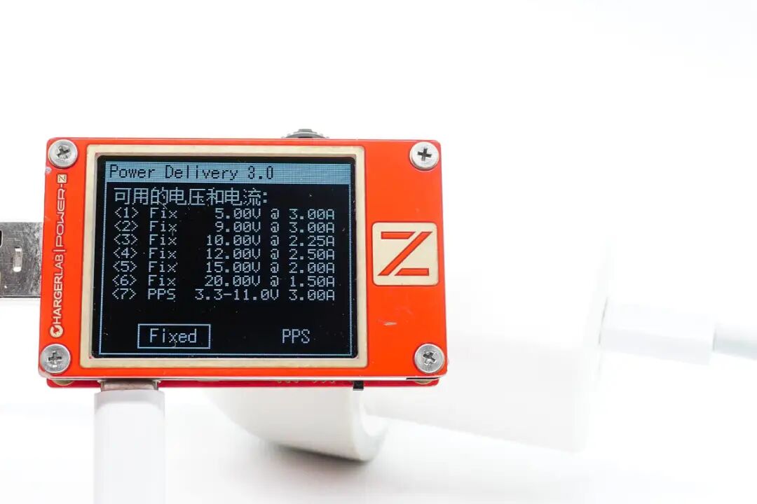 协议方面,使用 ChargerLAB 的 POWER-Z KT002 读取充电器 USB-C 接口的快充协议,实测支持 Apple2.4A、QC2.0、QC3.0、QC4+、AFC、FCP、SCP、PE、PD3.0和PPS等充电协议。