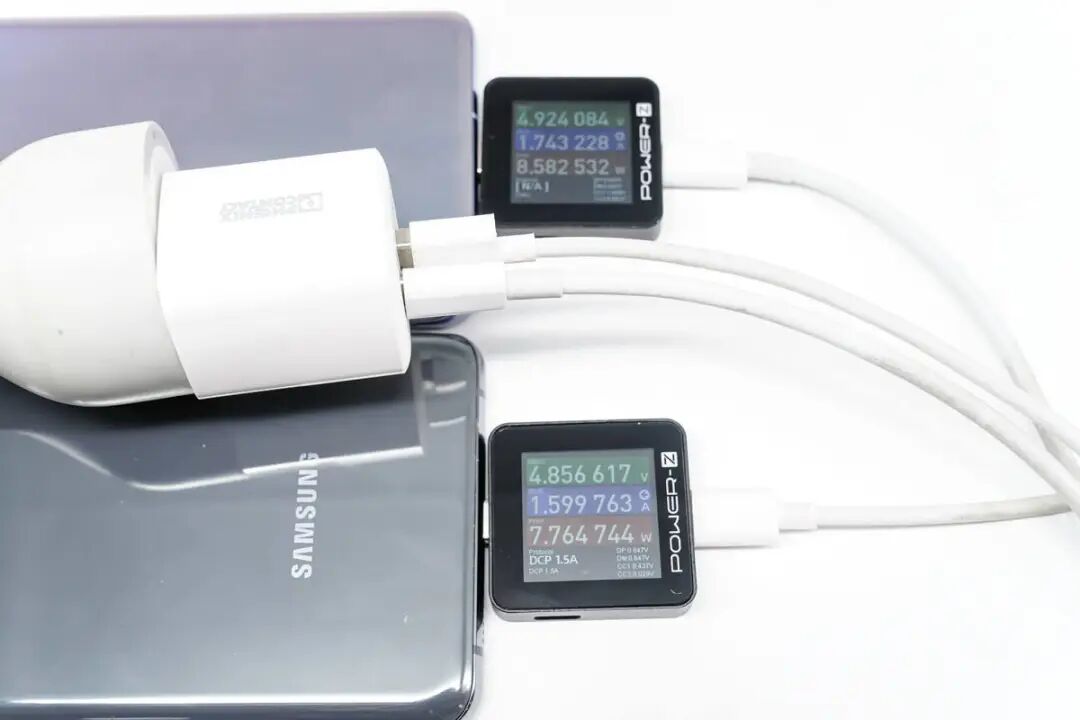 USB-A 的兼容性同样不错,实测各类机型都能触发快充,对华为、小米、魅族等机型都能达到20W以上的充电功率。