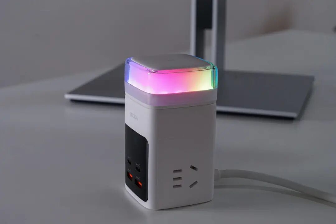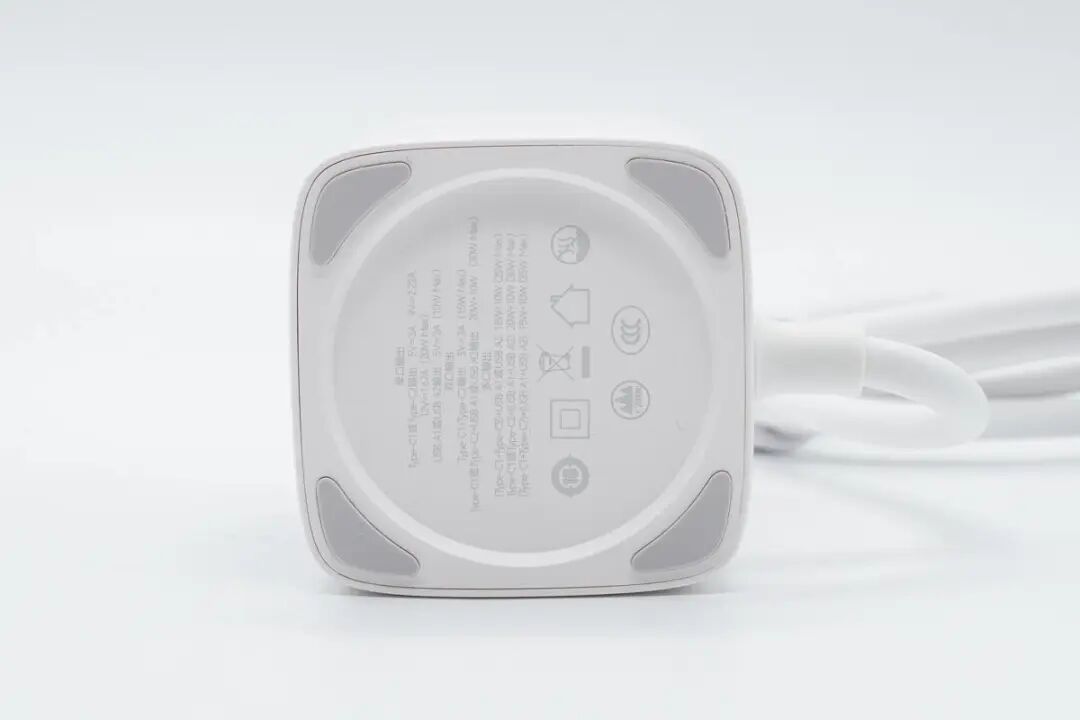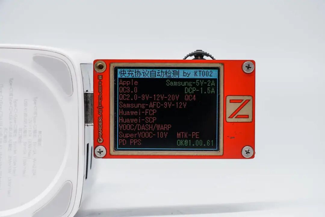 说到磁吸的运用,第一时间就会想起Apple,首次将磁吸功能运用在MacBook的MagSafe充电线上;经过市场的检验,磁吸已经成为了一种全新的设备交互方式,具有生活质感和艺术感。谈到磁吸,国内也同样有更多的品牌厂商玩出了新花样,其中作为消费电子品牌的热豆科技率先发布的磁吸模块化无线充产品,成为磁吸模块无线充的开创者;并且拥有多类模块的创新组合方式,用户能领略到“真无线,次世代”下的出行、居家、办公生活新方式。近期,充电头网也是拿到热豆科技旗下的热豆七合一模块,在小体积内融合AC+DC+无线充三类功能,官称搭配热豆STC智能散热控制+热豆氮化镓控温技术,实现四面八方,疏散热浪;具体拥有何种新奇的磁吸搭配玩法和输出性能,接下来的实测环节将一一揭晓。包装盒采用天地盒设计,白色与浅卡其色相拼接毫无违和感。正面印有热豆品牌Logo、接口配置图以及iPhone外观场景图,明示着能够兼容iPhone充电。侧面外观上类似,除背景场景图外,明示即将上市的磁吸支架二合一模块,能够对AirPods等耳机设备进行充电。另一侧印有手表场景图,明示即将上市的磁吸支架三合一模块,能够对Apple Watch等支持无线充的智能手表充电。这一侧印有老式音乐碟片背景图,相比较其他封面,应该是暗示磁吸拾音灯模块。包装盒顶部印有闪电标志的产品顶部,顶部区域或支持无线充电功能。包装盒底部拥有各类生产说明信息以及CCC等认证标识,并绘制热豆自有的虚拟人物—“热小豆”图画,右侧以路线图的方式形象表现产品的各类特点;除此之外,用户登陆“热豆redow”公众号可额外获得180天产品延保期;白色贴纸为产品型号:RD-MT050,以及产品条形码。打开包装,除热豆七合一模块(D1 45W)外,附赠额外虚拟人物贴纸,可随意发挥自己想象DIY;可以看到并不附赠手册,均以扫码的形式获取电子版说明书、保修卡以及180天延保服务。从正面看,热豆七合一模块(D1 45W)本体采用94-V0等级的防火PC材料,整体白色+前面板黑色亮面设计。通电时,在4个USB接口上方能看到隐藏的LED显示屏,显示最高总输出功率:45W。正面黑色亮面区域配有2C2A四个USB接口,上方均印有标识;USB母口胶芯均为橙红配色。热豆七合一模块(D1 45W)背面印有基础产品规格参数铭文。额定功率:2500W,额定电流:10A,额定电压:250V~输入:100-240V~50/60Hz 0.8A Max无线充电输出:15W MAX,总输出功率:45W Max。两侧均配备五口AC强电接口,拥有白色保护门,防止儿童意外触电。顶部与包装盒印刷一致,拥有闪电标志,实测支持无线充电功能,根据铭文参数得知最高15W充电,下面测试环节将会进行验证。底部四角边缘拥有橡胶防滑垫,增加与桌面间的摩擦,放置更稳定;圆形凹陷区域印有接口详细规格参数铭文。Type-C1/C2:5V3A,9V2.22A,12V1.67A(20W MAX);USB-A1/A 2:5V2A(10W Max)双口输出:双C口:5V3A(15W Max);单C口+单A口:20W+10W(30W Max)多口输出:双C口+单A口:15W+10W;单C口+双A口:20W+10W;双C口+双A口:15W+10W。线材与热豆七合一模块(D1 45W)本体底部连接处采用加厚设计,耐用防弯折。延长线部分用布艺魔术贴+固定线缠绕固定,魔术贴固定在线材本体上。线材本体上拥有CCC认证凹印标识,线材加粗线芯面积3×1.0m㎡,广州市凯博电线电缆有限公司制造。交流电接入端采用国标三脚插头,印有10A 250V~字样,插脚处印有地火零线标识。热豆七合一模块(D1 45W)长度约为63.58mm。热豆七合一模块(D1 45W)高度约为80.92mm。热豆七合一模块(D1 45W)宽度约为64.09mm。热豆七合一模块(D1 45W)带延长线材整体重量约为420.3g。协议测试模块主要测试充电器完整的快充协议,除标注支持PD3.0等快充协议外,用户可以根据具体的协议来匹配输出设备,从而获得更好的快充体验;由于USB-C接口、USB-A接口规格相当,均只测试其中一个接口。使用POWER-Z KT002读取充电器 USB-A 接口的快充协议,实测不支持快充协议。使用POWER-Z KM002C读取充电器 USB-C 接口的快充协议,实测支持SCP、FCP、QC3+和PD3.0等充电协议,覆盖范围还不错。PDO报文方面,支持 5V3A、9V2.22A、12V1.67A三组固定电压。接下来就带大家看一看这款充电器的具体使用体验。充电头网会从兼容性测试、充电全程测试、待机功耗测试等方面带大家全方位了解这款充电器。兼容性测试环节可以清楚的得知充电器为各个设备的充电情况,充电头网会使用数十款设备搭配充电器进行测试,为读者呈现真实的测试数据。USB-C在单独使用时支持20W快充,使用USB-C为iPhone 13充电,功率为9.14V 2.16A 19.81W。将USB-C的兼容性测试数据汇总,整体来看无论是手机还是游戏机、平板电脑,都可以提供快充服务。柱状图部分,20W的功率上限也使得设备之间的功率差距很小。USB-A支持10W充电,为小米11 Pro充电,功率为5V 1.74A 8.75W。热豆七合一模块(D1 45W)配备了2C2A 4个USB接口,可以最多同时为4台设备充电,下面来实测一下。经实测,热豆七合一模块(D1 45W)配备的4个USB接口可以同时为4台手机充电。除了有线充电外,热豆七合一模块(D1 45W)顶部还支持无线充电。将一加9 Pro放在无线充电区域,可以正常开启无线充电。将iPhone(iPhone8及以上)放在无线充电区域,可以正常开启无线充电。将小米手机(小米9及以上)放在无线充电区域,可以正常开启无线充电。将华为手机(Mate20及以上;P系列Pro版本30及以上)放在无线充电区域,可以正常开启无线充电。针对热豆七合一模块(D1 45W)的充电全程测试,本次选用的是iPhone 13 Pro Max,目的是测试