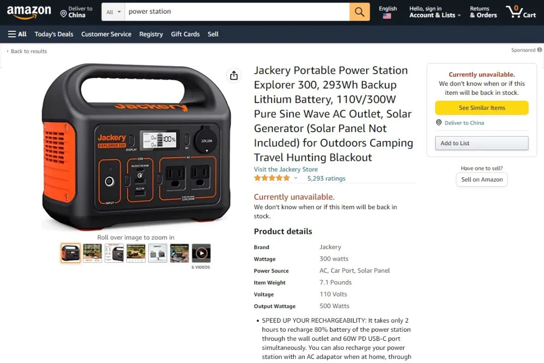 本次登上榜单 TOP1 的是 Jackery Portable Power Station Explorer 300,该产品上次榜单排名第二,这次直接冲上榜首。售价为 299.99 美元,电池容量 293Wh,额定输出功率 300W,评分 4.8,评论数量 5116。