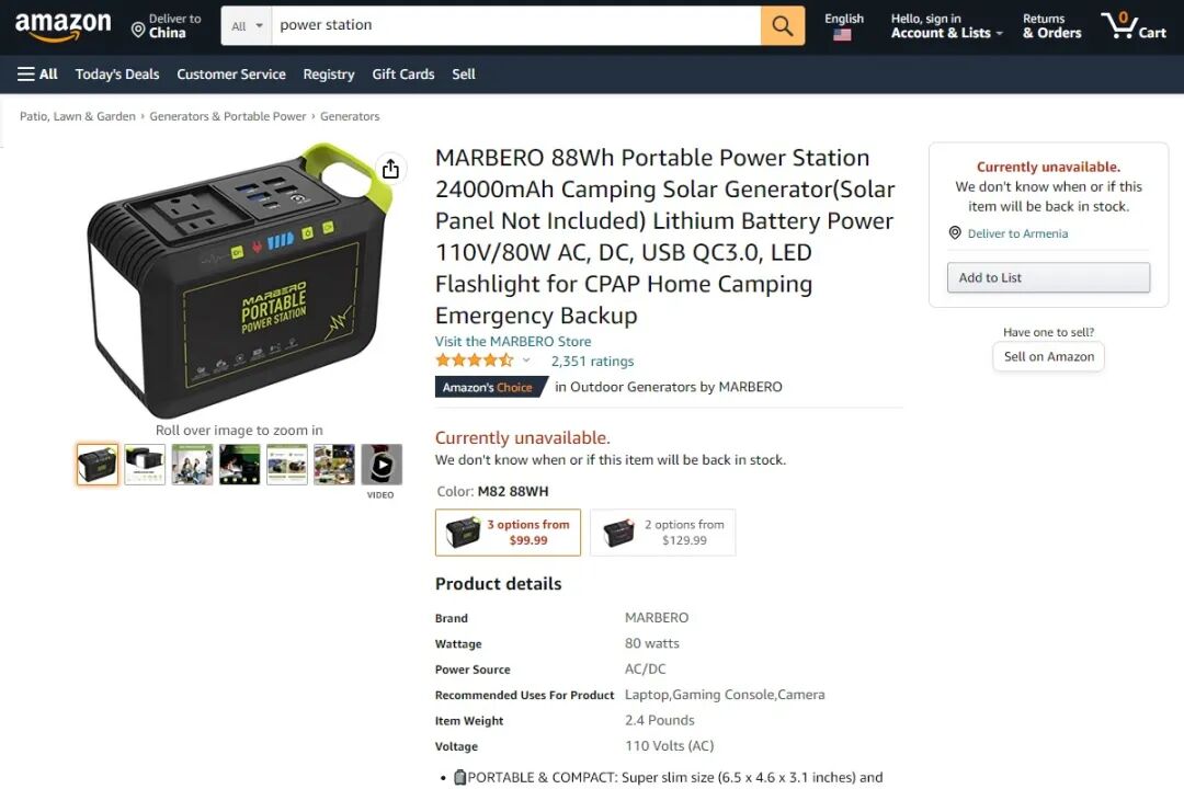 本次统计的美国亚马逊户外电源榜单十款上榜户外电源,售价从最低 99.99 美元到最高 499 美元,电量从最低 88Wh 到最高 518Wh,功率从最低 80W 到最高 500W。