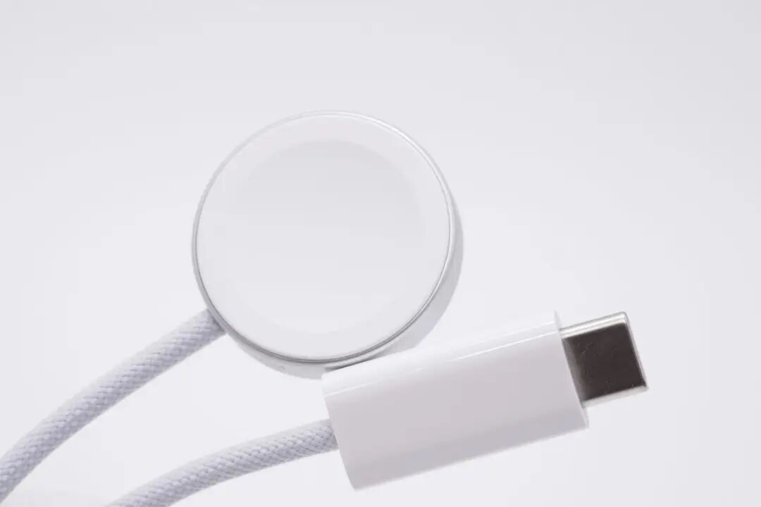 Watch Ultra配套充电线材子端为USB-C端口,可适配市面主流的充电器;无线磁吸充电区域中间为凹陷设计,更好贴合表背;此前也有许多能给Apple Watch充电的产品,感兴趣的用户可以回看一下。Watch Ultra配套充电线材线身为高密度编织设计,拥有更好的耐磨耐弯折特性;此外,磁吸金属外壳侧边印有充电线参数规格:型号:A2515,输入:5V1A。三款原装充电线中,仅Watch Series SE 2配套充电线材外壳部分采用的是PC塑料材质制作;除端子从USB-A更换为USB-C端口外,其他并无区别,但可适配市面主流的USB-C充电器,算是优势之一。