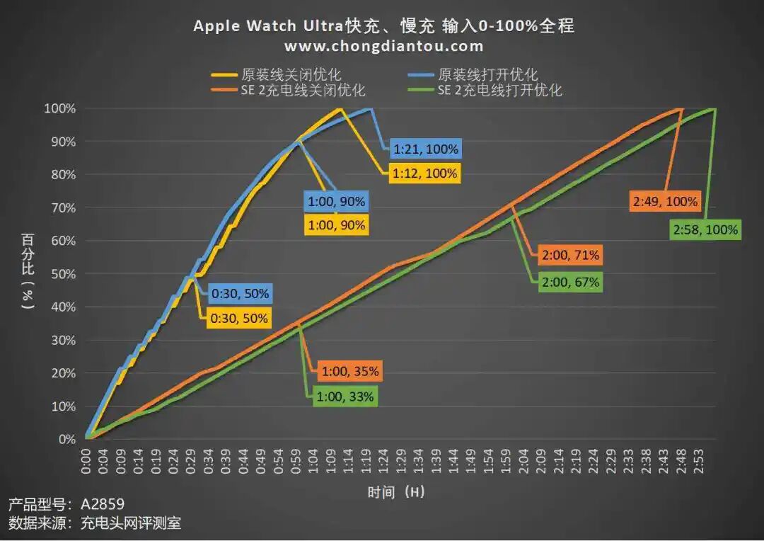 Apple Watch Ultra 针对运动型用户,拥有全新的外观设计和更好的防水防震性能;并且同样搭载 Apple Watch 核心功能,包括健身记录跟踪、高低心率通知和 SOS 紧急联络,以及创新车祸检测功能。充电头网此前也对新款手表进行过测试,其充电功率相比用户也有所了解;但针对于户外运动,Apple Watch Ultra拥有更大容量的电池以及快充功能,那快充跟普通充电会有哪些方面的差异呢?