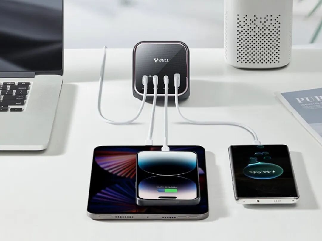 单设备使用时,USB-C1/C2 支持功率盲插,最大可提供 67W 快充输出;USB-C3 支持 30W 快充输出;USB-A 支持 22.5W 快充输出。多设备充电时,智能调整接口性能,支持 45W+20W、40W+22.5W、30W+20W+15W 等不同功率分配策略。