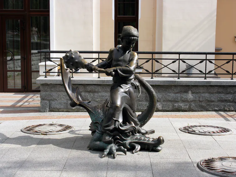 乌克兰童话人物科蒂戈罗什科击败恶龙的雕像