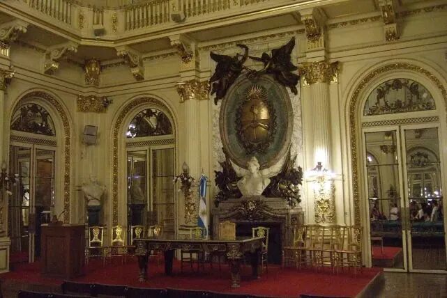 阿根廷持续低迷的时间太长了,以至于人们很容易忘掉,从1880年左右到第一次世界大战,阿根廷一直是世界上最富裕的国家之一。布宜诺斯艾利斯最奢华的建筑可以追溯到那个时代,包括那些高耸入云、装饰华丽的标志性古典风格建筑物,如国民银行(1888)、市政厅(1891)、玫瑰宫(Casa Rosada,总统府)(1894)、巴黎酒店(1895)和国会大厦(1906)。世纪之交,在布宜诺斯艾利斯的商界大亨们举办宴席的赛马俱乐部中,到处是装饰着织锦和镀金镜子的豪华房间。
