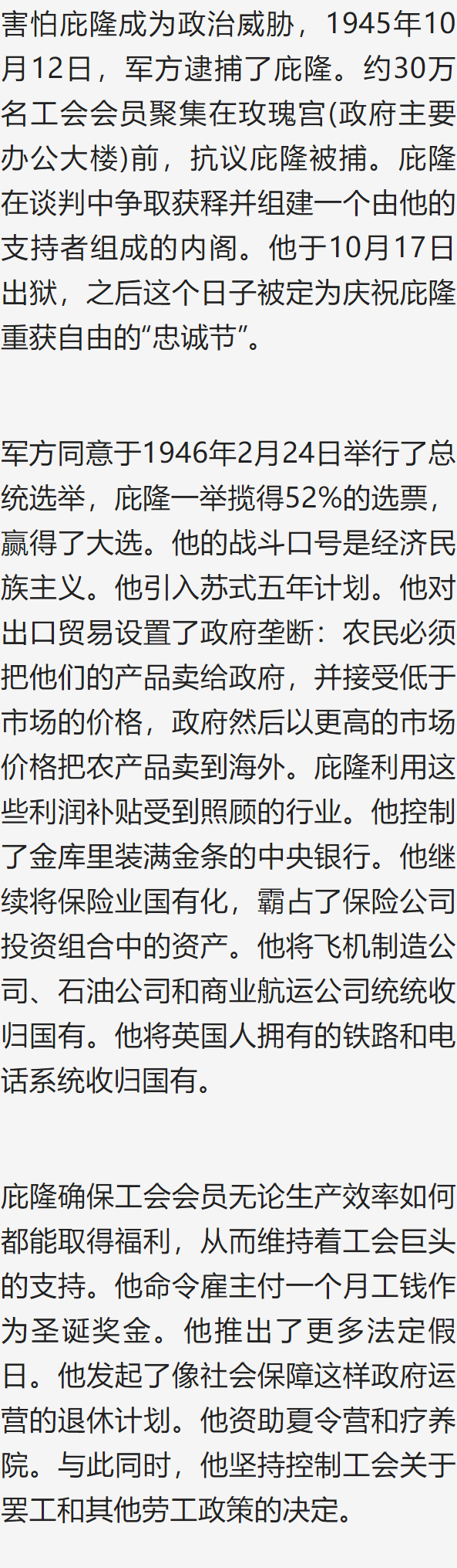 自那以后的几年里,阿根廷历届总统都有过引入市场改革从而带来希望的时刻,但由于利益集团的游说,尤其是工会的游说,改革总是以失败告终。(干预主义)计划一旦开始,在政治上就难以停止,不管它被证明是多么有害。