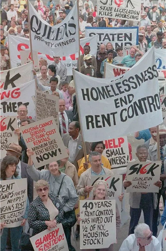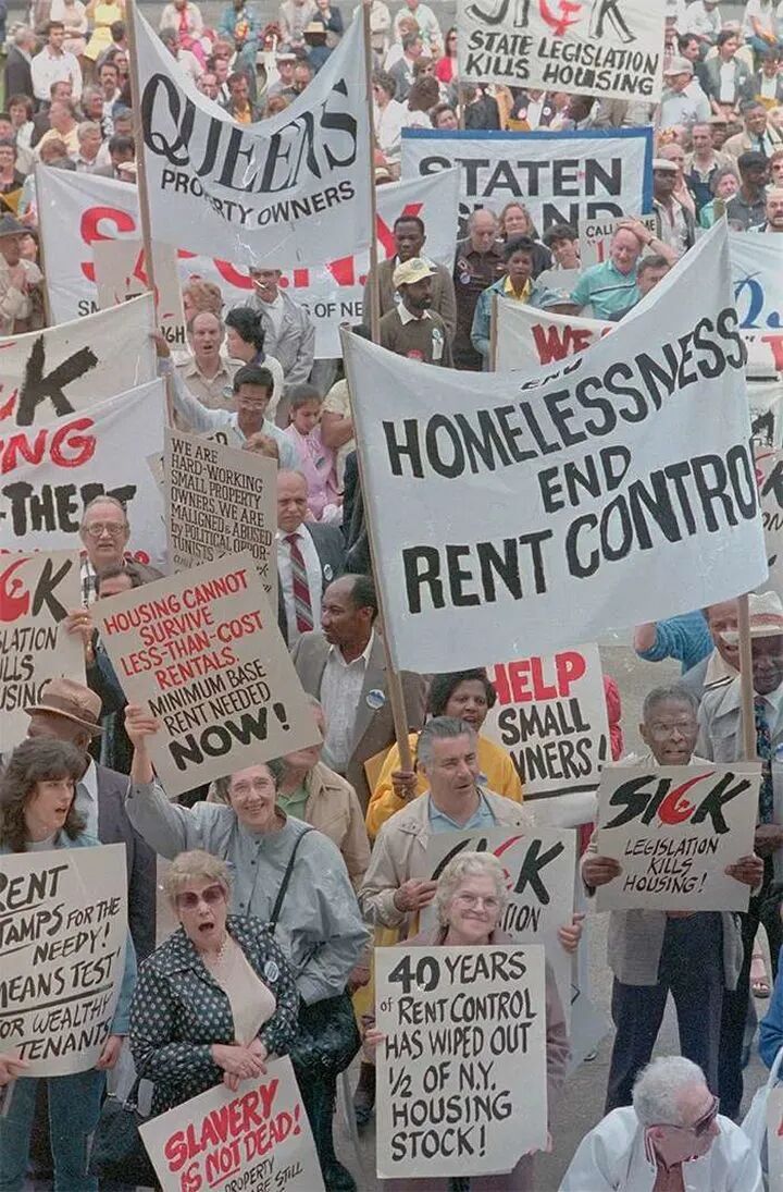 房东打官司到最高法院,法院不受理,最后不了了之,所以到现在美国房租管制依然存在,也就是说,房东想涨价,那是很困难的,房东想赶走房客,是得花大钱请律师的。如果是你,你还愿意买房投资租赁给别人吗?